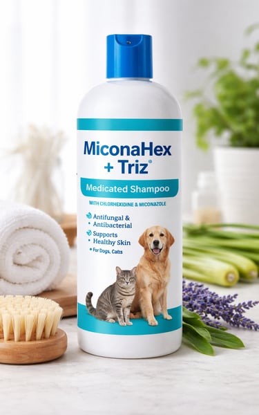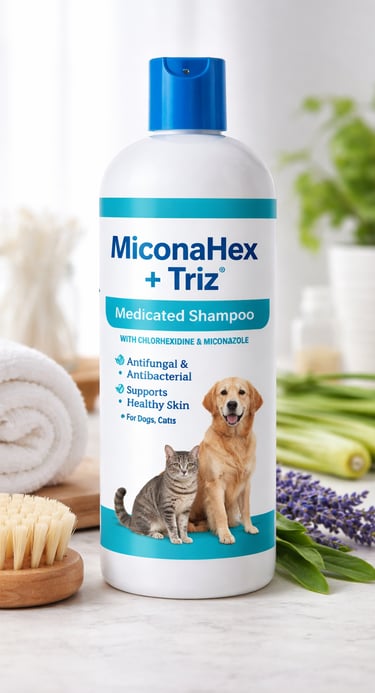 • Medicated yeast-support shampoo (vet-style) – used when odor is persistent or recurring and your veterinarian has recommended medicated bathing.