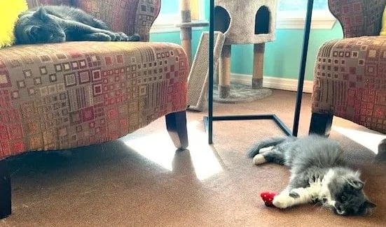 During this time, the kitten had his own space where he could adjust safely while my senior cat had peace and predictability.