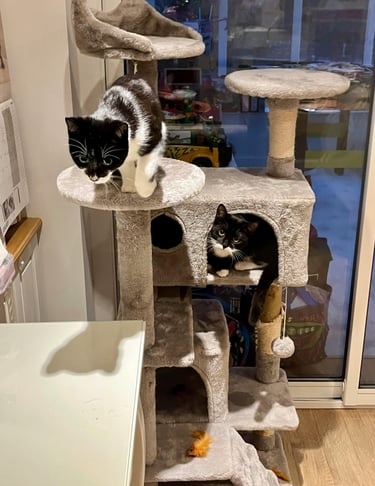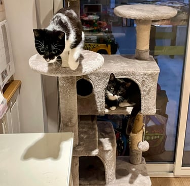 When one cat needed confinement or downtime, enrichment prevented frustration.